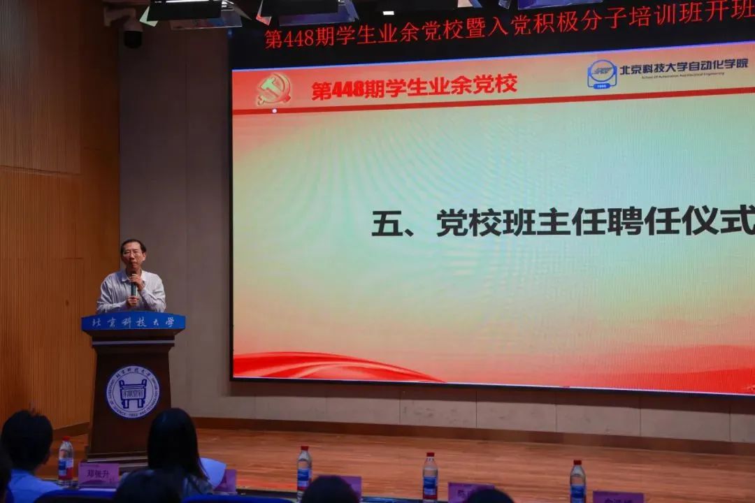 4月17日,第448期学生业余党校暨自动化学院、创新创业学院入党积极分子培训班开班典礼暨第一讲专题报告在时代凌宇报告厅举行。自动化学院党委书记李擎,创新创业学院党委书记王鹂,自动化学院党委副书记、副院长陈建帮,创新创业学院党委副书记、副院长邓张升,自动化学院团委副书记俞浩博,自动化学院党建辅导员韩宏宇、邵思玉,创新创业学院党建辅导员张鸿阳,本期学生业余党校各班班主任和全体同学参加。开班典礼由邵思玉主持。