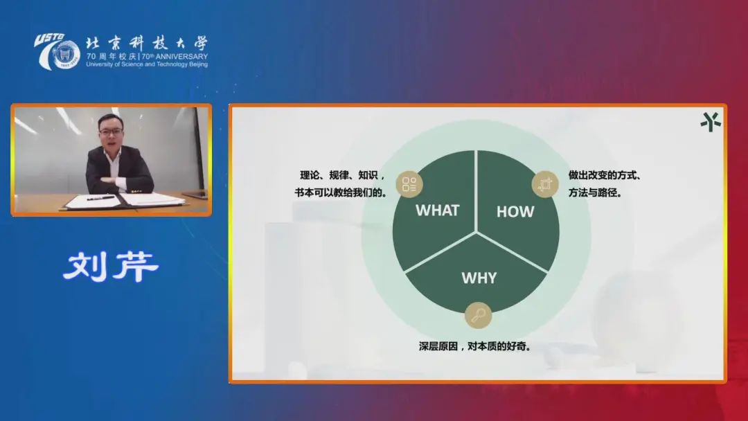 刘芹回顾了大学时期的学习感悟,在《牛顿之问与达芬奇笔记——科创人才培养的价值和实现》主旨报告中,以瘟疫与牛顿奇迹之年的故事作为引入,生动阐释了why、what、how的能力对于科创人才培养实现的重要意义。
