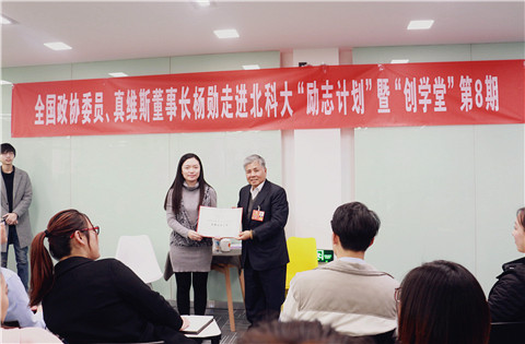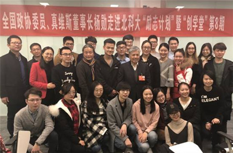3月12日,全国政协委员、真维斯董事长杨勋先生受邀走进北京科技大学“励志计划”暨“创学堂”第8期课堂,与北科大的同学们亲切交流,现场氛围活跃轻松。
