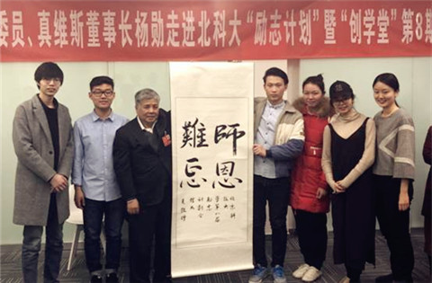 杨勋先生十分关心北科大“励志计划”发展,5年前就开始担任该“励志计划”的导师,每年都亲自带教两名励志学员,通过言传身教的方式,把杨勋先生多年来积累下来待人处事的经验,及对社会和国家的情怀,毫无保留的教授给学员们,帮助励志学员们成长为具有国际化视野的青年领袖。