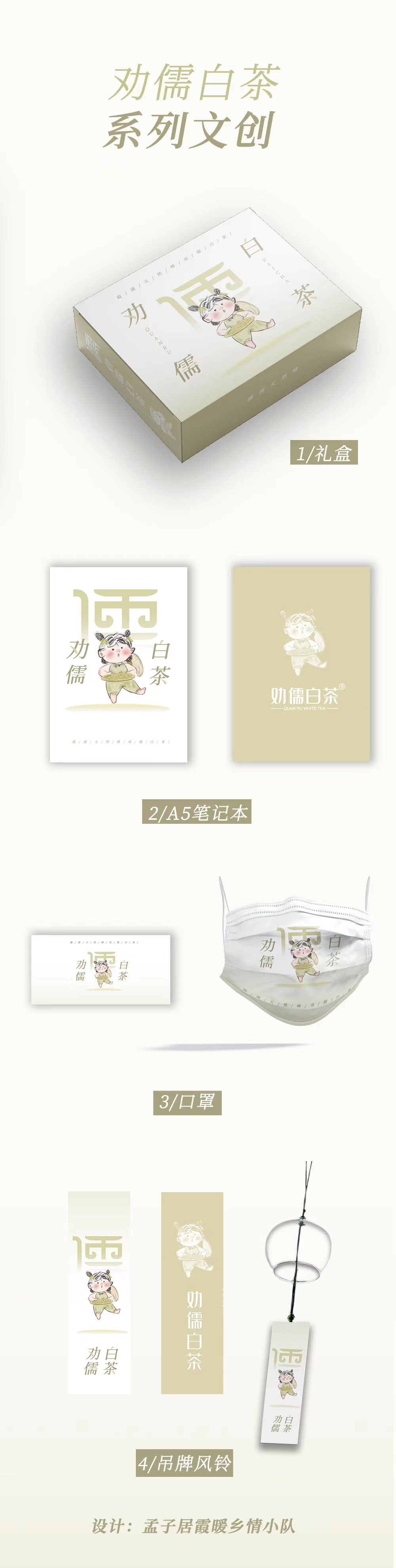 实践团成员为“劝儒白茶”品牌设计的虚拟卡通人物形象和系列文创。受访者供图