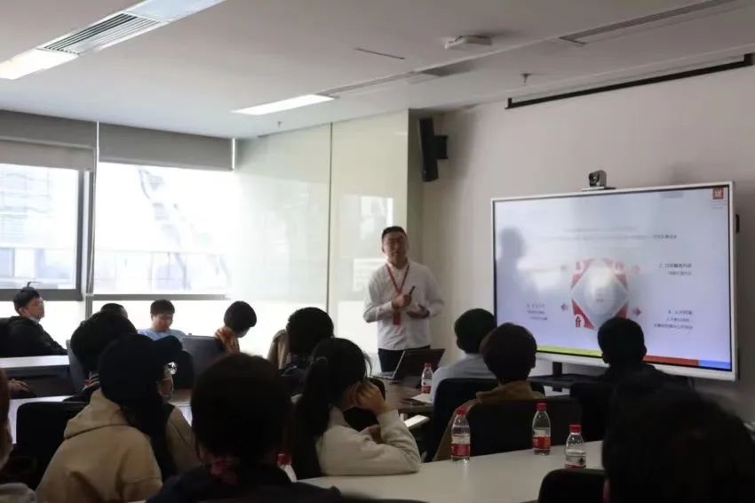 韩春涛学长毕业于我校机械学院,入职京东从事过机械设计的工作,现负责销售部的业务拓展,学长将京东业务概括为零售,科技,物流,健康(线上问诊,药品批发,零售,top1),保险,产发即地产,工业,自由品牌(网易严选,京造)八个板块,用自身的经历向大家介绍了京东集团的人才理念和价值观。