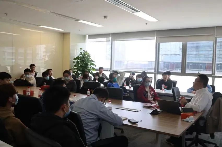 下午14:30分,同学们进入会议室开展了座谈会,入职京东5年韩春涛学长与同学们进行了亲切的交流。